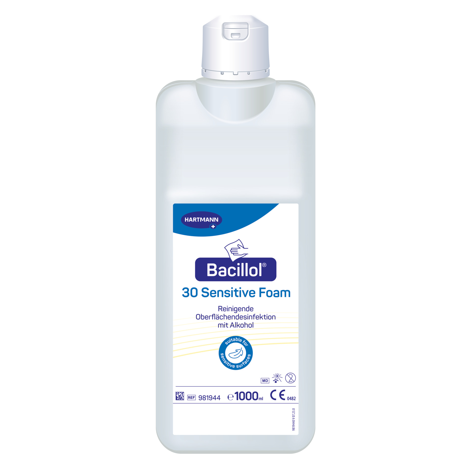 Bacillol® 30 Sensitive Foam ist ein geringalkoholisches, gebrauchsfertiges Desinfektionsmittel zur Desinfektion von Oberflächen nicht invasiver Medizinprodukte auch aus empfindlichen Materialien. Bacillol® 30 Sensitive Foam ist mit seiner speziellen Formulierung als Schaum optimal zur Schnelldesinfektion empfindlicher, alkoholempfindlicher Oberflächen, wie z.B. Patientenliegen aus Kunstleder, Monitore, Displays, Tastaturen und Bedienfelder von mobilen und stationären Geräten sowie für die schonende Desinfektion sensibler Medizinprodukte, geeignet.