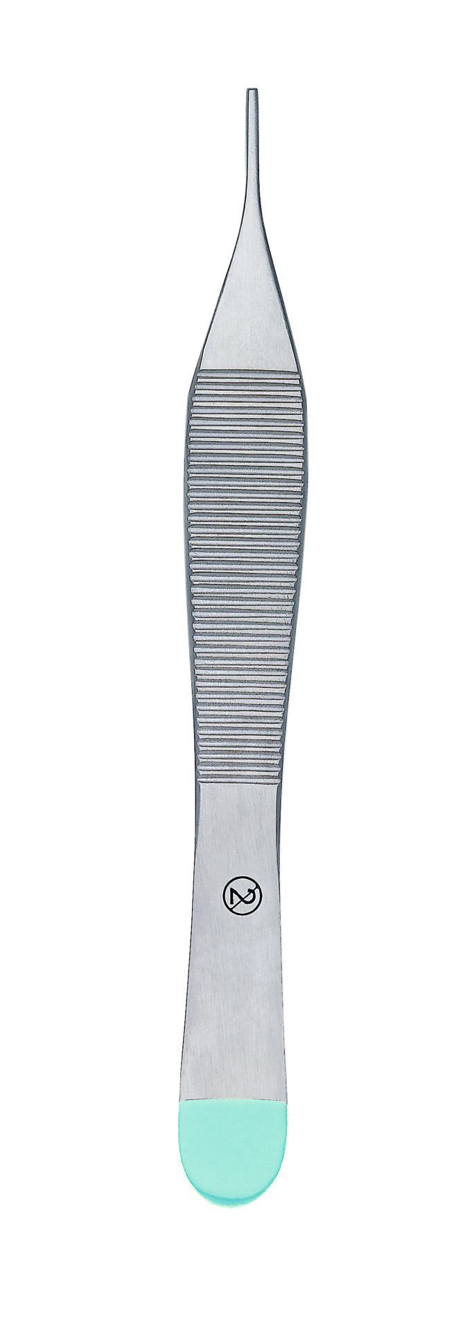 Feine und präzise Einweg-Pinzette aus Stahl mit Riffelung.