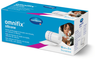 Omnifix® Silicone ist ein selbstklebendes, hautfreundliches Fixiervlies. Das Fixiervlies besteht aus einem Trägermaterial aus Polyester und einer mit einer Applikationsfolie geschützten Silikon-Haftschicht, wodurch sich das Produkt sogar auf empfindlicher oder vorgeschädigter Haut schmerzlos entfernen lässt. Omnifix® Silicone haftet zuverlässig, ist wasserfest und bietet sowohl eine effektive Barriere gegen das Eindringen von Bakterien als auch eine hohe Wasserdampfdurchlässigkeit.