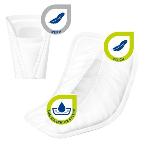 Beiden gemeinsam ist die hohe Qualität, die einen sicheren Auslaufschutz garantiert. Besonderer Wert wurde zudem auf einen aktiven Hautschutz gelegt, der durch den Einsatz einer speziellen Technologie einen optimalen pH-hautneutralen Wert von 5,5 sicherstellt, der dem natürlichen Säureschutzmantel der Haut entspricht. Zum aktiven Hautschutz trägt auch der 3-lagige Saugkörper bei, der Flüssigkeit rasch in das Innere des Saugkerns leitet und sie dort zuverlässig speichert. Geruchsbindende Bestandteile schließen Gerüche sicher ein.