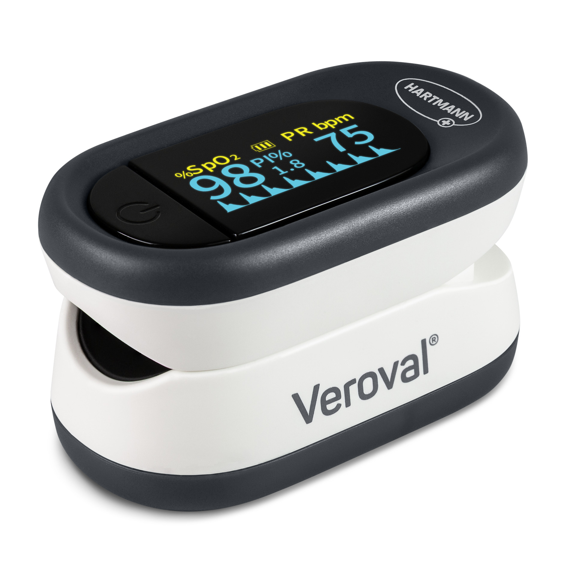 • Premium έγχρωμη οθόνη: Το Veroval® Παλμικό οξύμετρο διαθέτει περιστρεφόμενη OLED έγχρωμη οθόνη και διάφορες επιλογές προβολής, για παράδειγμα με γραφική απεικόνιση του καρδιακού παλμού. Η φωτεινότητα μπορεί να ρυθμιστεί ατομικά.
