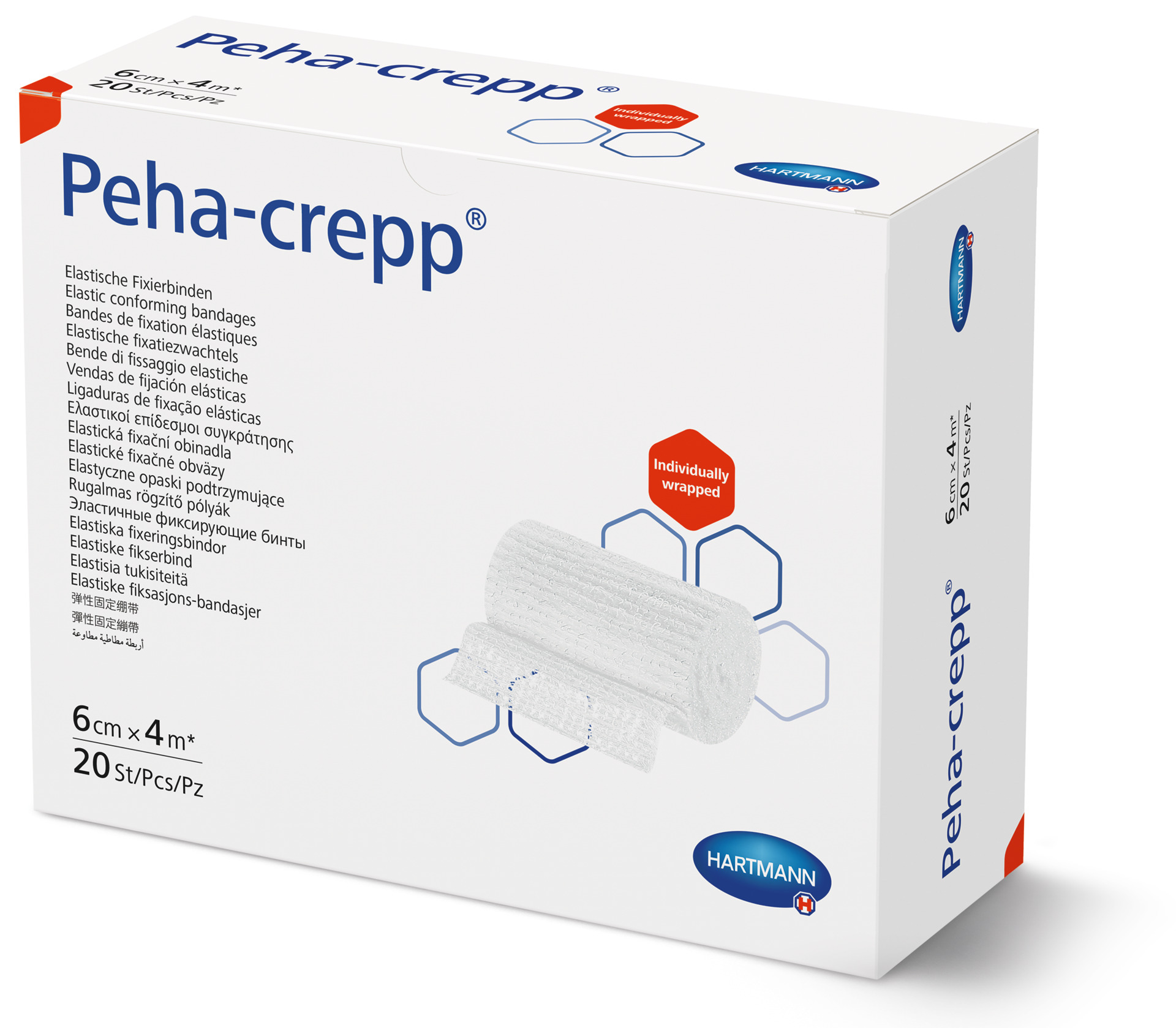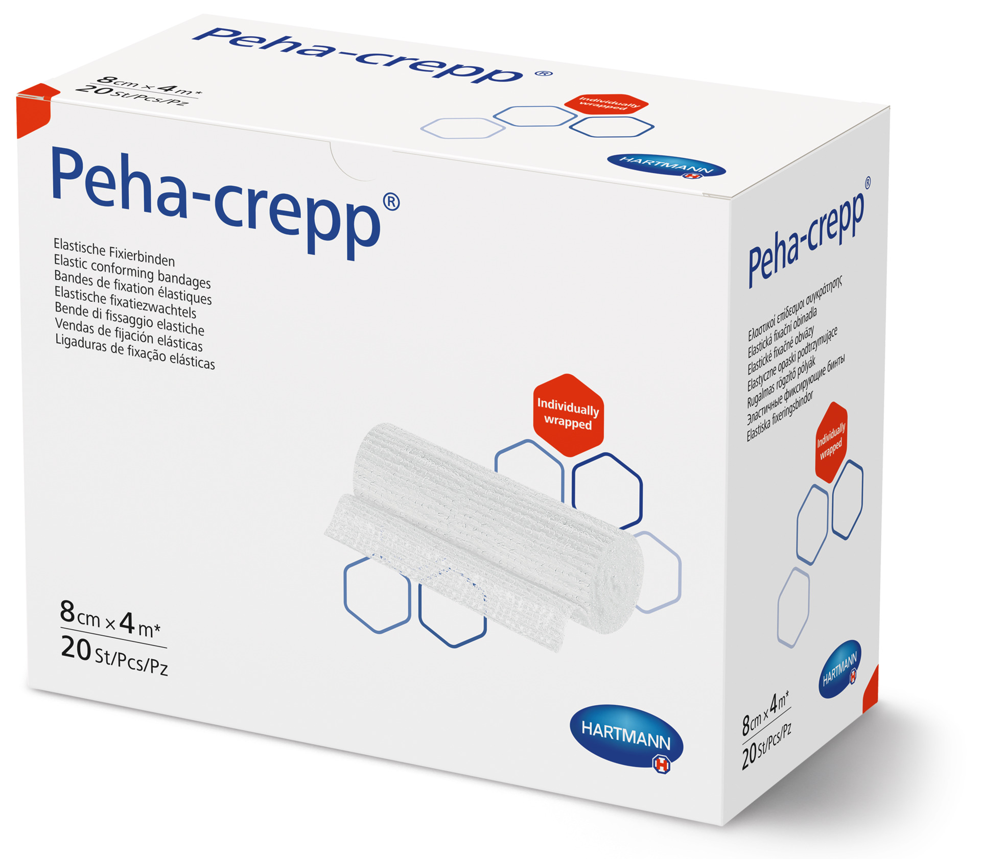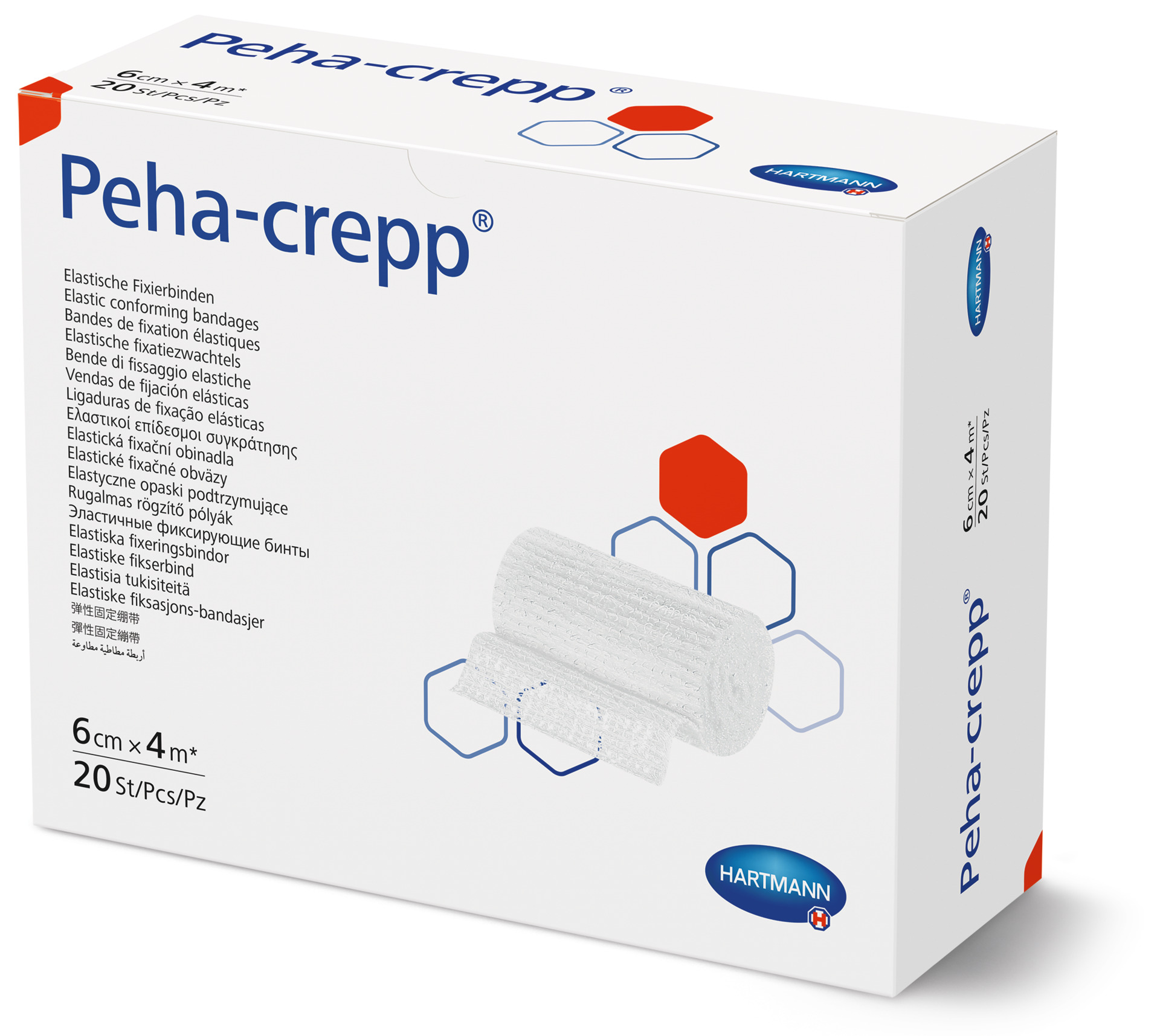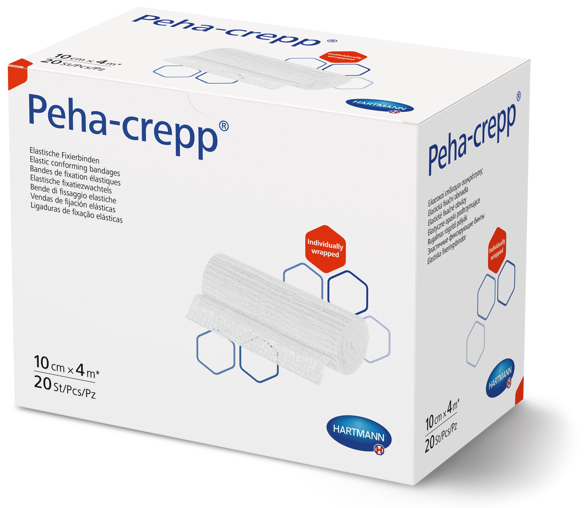 Super-elastic conforming bandages with a high content of natural fibres; crinkled woven structure; extensibility about 160 %; quick and easy to apply without folding turns; reliable non-slip fit; due to its open weave structure it is particularly light and permeable to air; sterilizable (steam A 134 °C).
