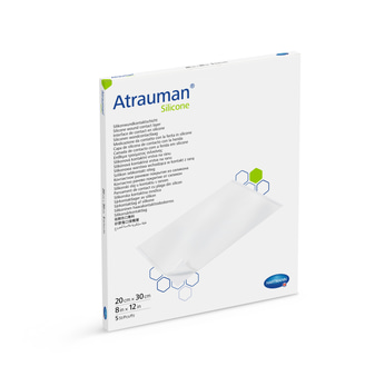 Atrauman Silicone is a single-use wound contact layer for the treatment of superficial, acute and chronic, slightly to moderately exuding wounds, only applied by professional users. Atrauman Silicone may be applied as a primary dressing in combination with an absorbent secondary wound dressing. Atrauman Silicone functions as protection before adhering the secondary dressing or the negative pressure dressing over the wound. This wound contact layer is permeable for exudate. Furthermore, Atrauman Silicone may be applied as a protective layer on non-exuding wounds and on sites with sensitive skin.