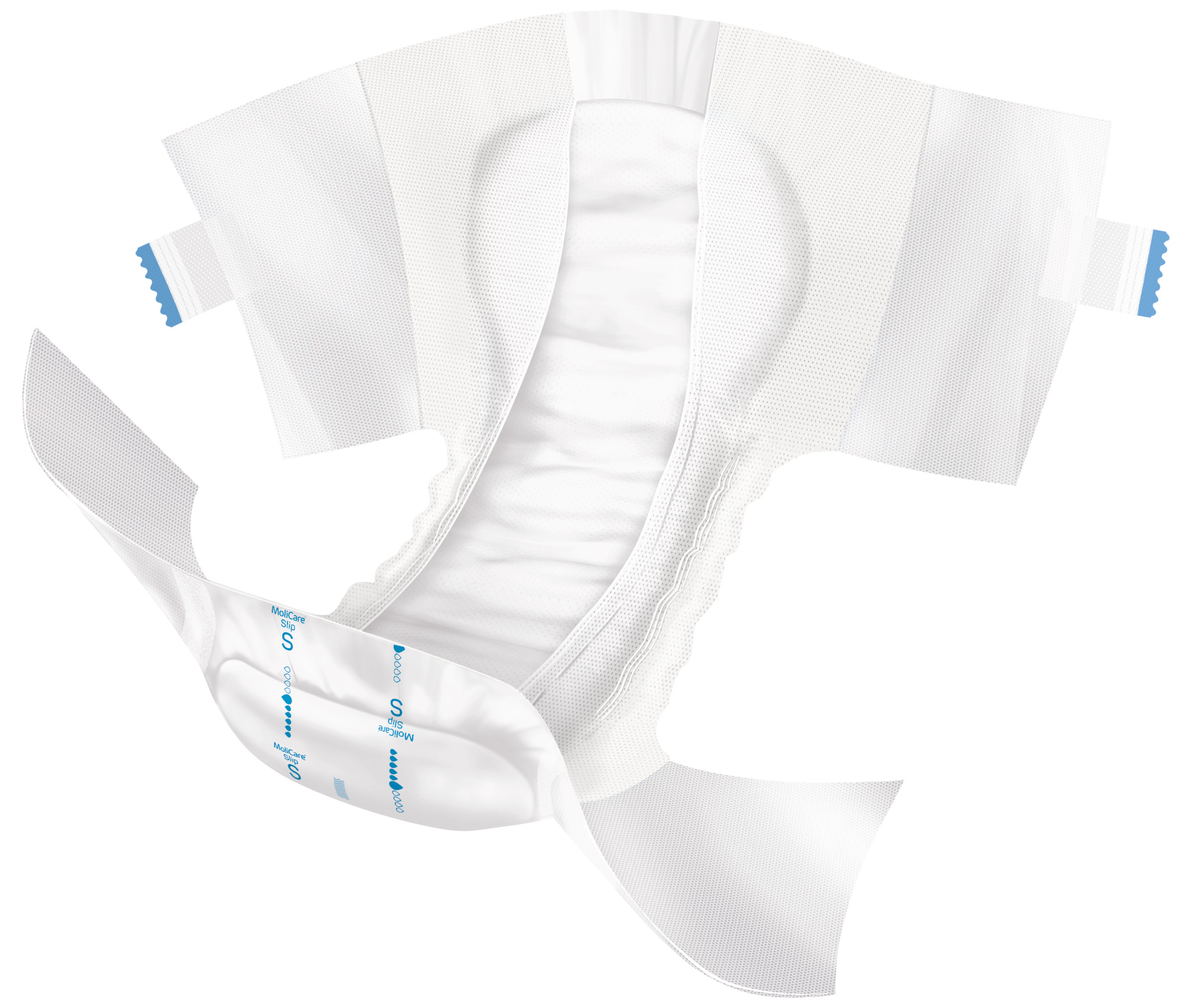 Disposable adult nappies for men and women with re-closable hook-and-loop tapes for a personalised fit. Suitable even for very small and small body types.