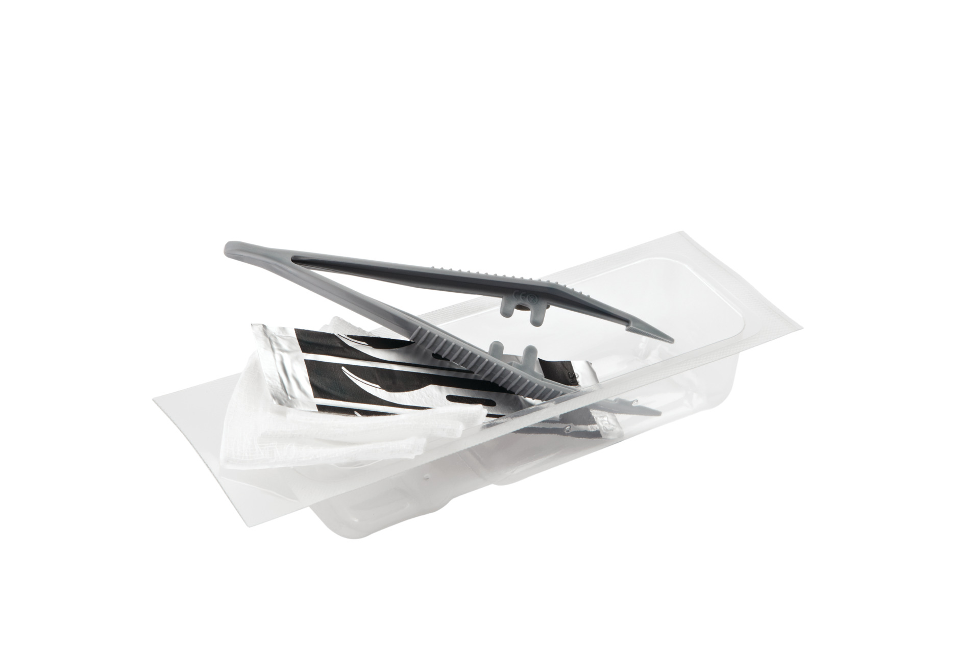 Each set consists of combination of single instruments : plastic and/or metal forceps,stich cutter, swabs and balls.
