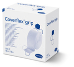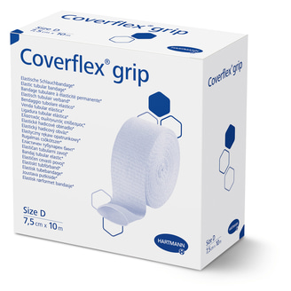 Coverflex® grip is an elastic tubular bandage. Coverflex® grip is to be used on intact skin. It is intended to be used for secondary fixation, as skin protection under cast and support to joints and ligaments. The compression effect of the product is because of material and product design but no a product which is intended for compression therapy. 82 % cotton 9 % elastane 9 % polyamide