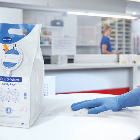 BODE X-Wipes Safety Pack is recommended for the disinfecting surface cleaning in all areas in hospitals, nursing homes, laboratories, operating theatre, gastrology that require maximum hygiene, cost-effectiveness and user convenience.
