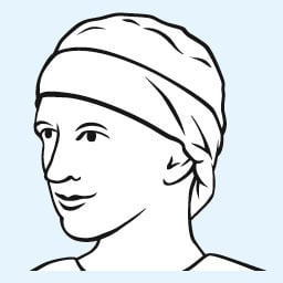 Surgical caps made of a breathable viscose nonwoven material; reduces the risk of particles falling into wounds; available in different cap types