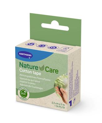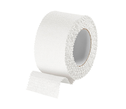 Self-adhesive tape for the fixation of dressings and gauzes.