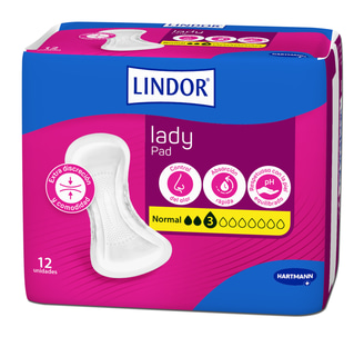 Diseñadas para mujeres con incontinencia urinaria leve, las compresas para incontinencia Lindor® premium lady 3 gotas ofrecen protección adicional contra fugas y ayudan a prevenir la irritación de la piel.