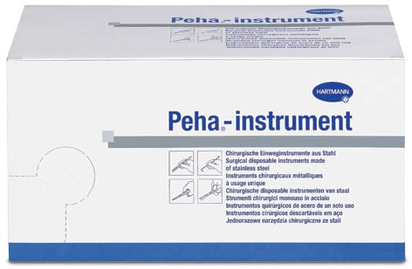 Los productos complementarios Peha-instrument son instrumentos quirúrgicos de acero de un solo uso para tratamientos transitorios en intervenciones médicas o para tratamientos a corto plazo en intervenciones quirúrgicas, utilizados por profesionales sanitarios. Los dispositivos están diseñados para usarse en condiciones estériles.
