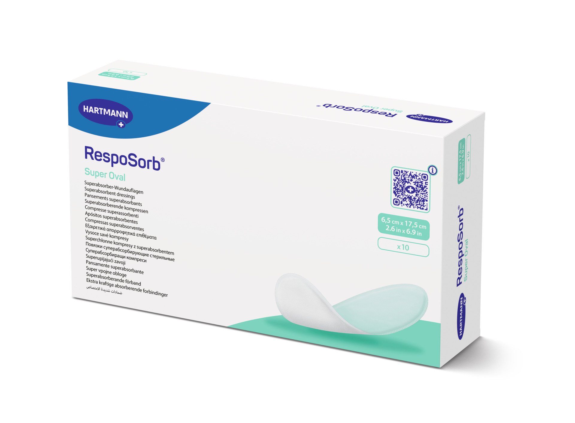 RespoSorb Super est un pansement superabsorbant qui se compose de quatre couches de matériaux différents. Du côté de la plaie, le produit présente un non-tissé doux, blanc et hydrophile (viscose et polyamide). L'intérieur du pansement est constitué d'une couche de cellulose douce mélangée à des polymères de polyacrylate retenant les liquides. Ce coussinet est lui-même contenu dans une fine couche de fibre non tissée qui répartit uniformément le liquide dans le coussinet. Sur le côté opposé à la plaie, le produit comporte une couche verte de non-tissé en polypropylène, qui est hydrofuge mais perméable à l'air et permet les échanges gazeux.
