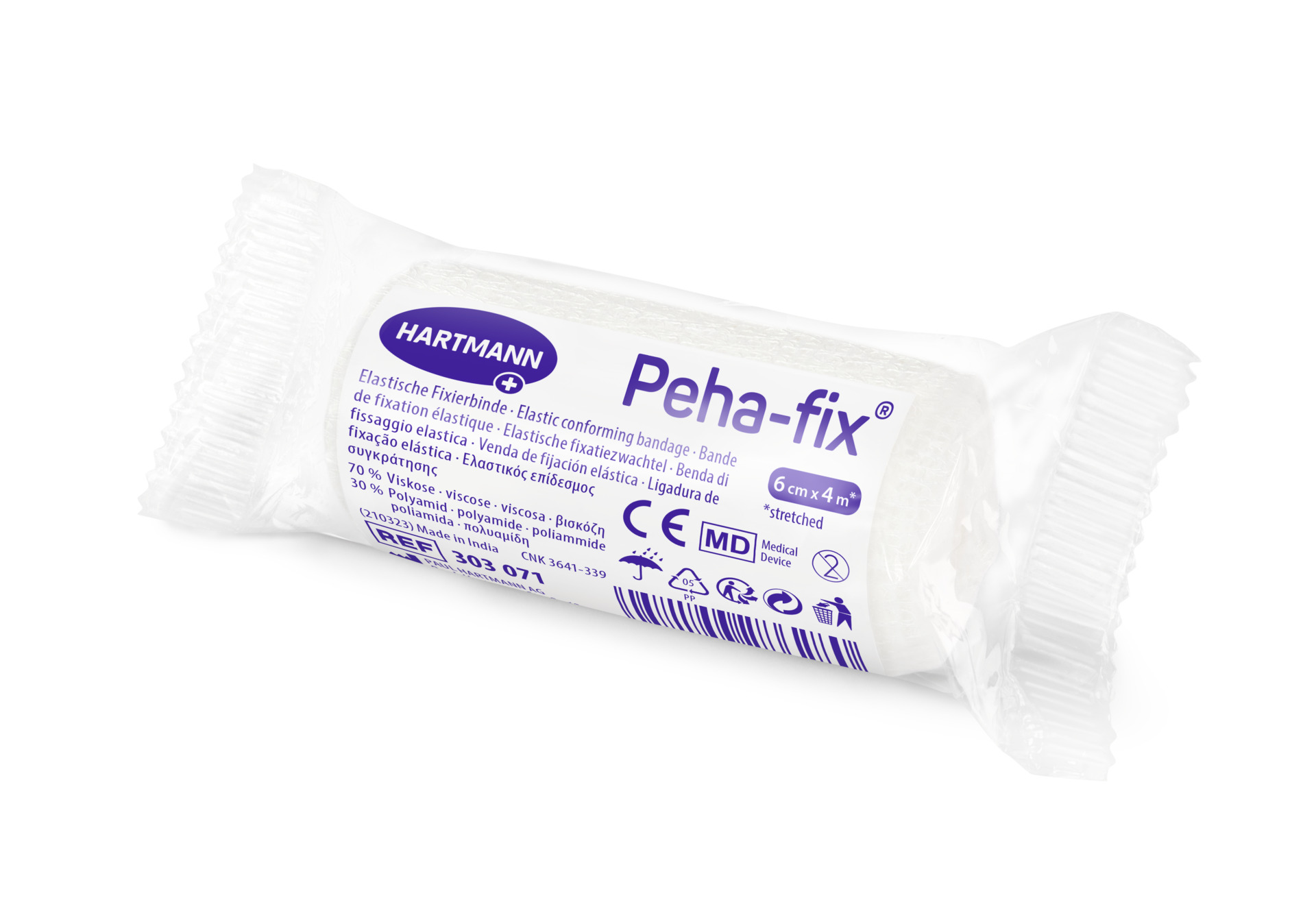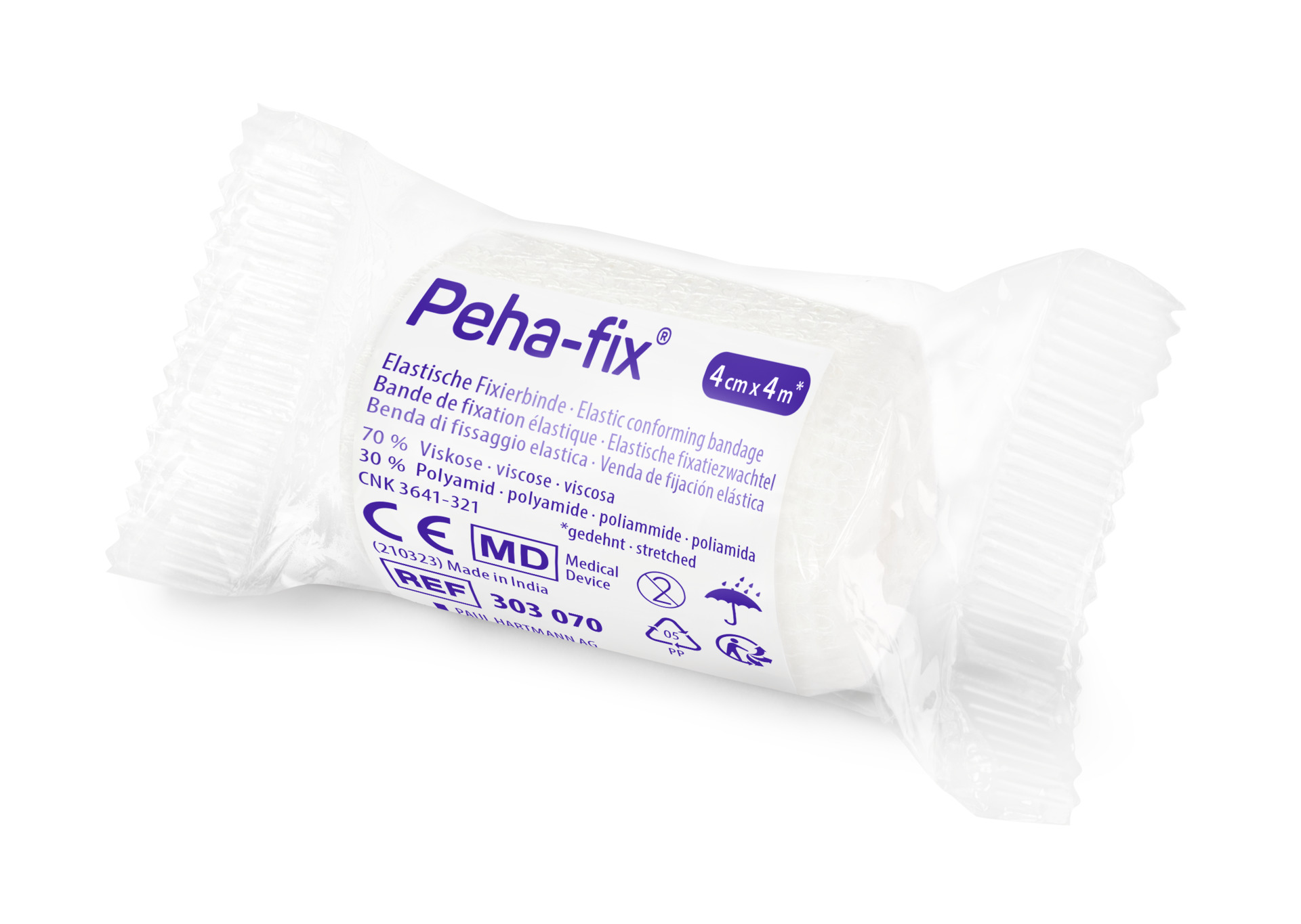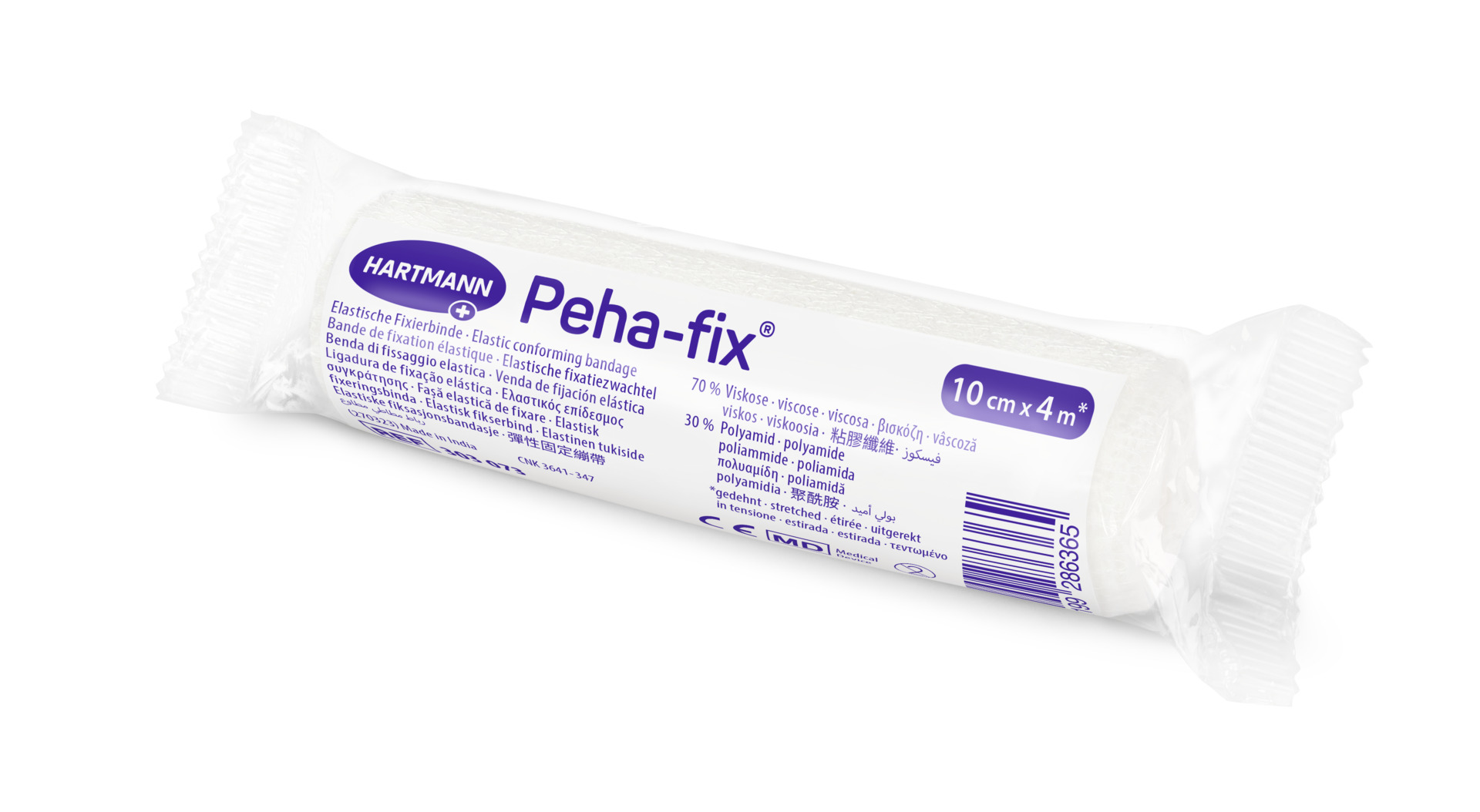 Bendaggi conformati superelastici ad alto contenuto di fibre naturali; struttura intrecciata increspata; estensibilità di circa il 160 %; applicazione facile e veloce, senza pieghe; tenuta antiscivolo affidabile. 70% viscosa, 30% poliammide.