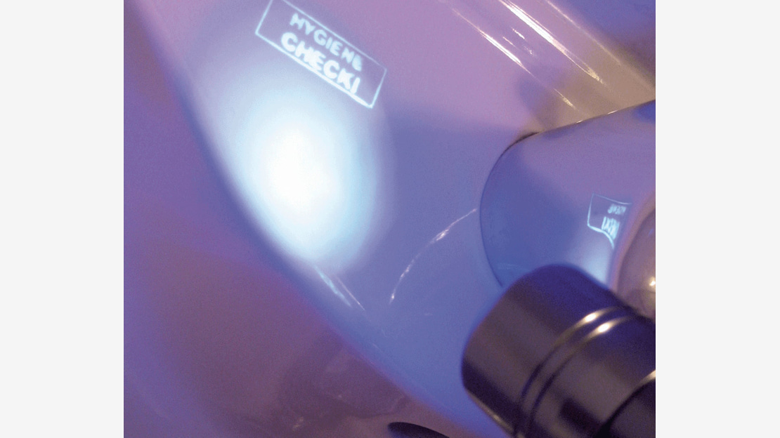 Testkit voor optische controle van oppervlaktereinigings- en desinfectiemaatregelen.