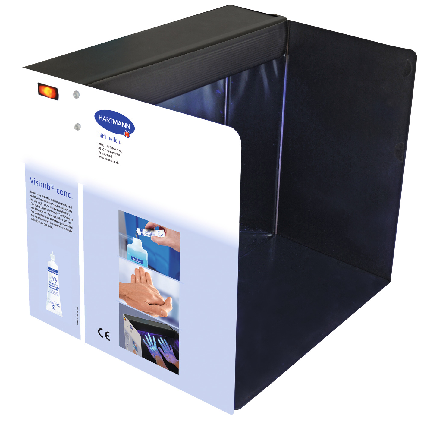 De Derma LiteCheck® Box is in combinatie met Visirub, een fluoresentieconcentraat, een prachtig hulpmiddel om de desinfectiemethode zichtbaar te maken en te beoordelen of er bij de handdesinfectie delen van de handen/polsen zijn overgeslagen. Het regelmatig trainen van (zorg)medewerkers is essentieel voor het optimaliseren van de handhygiëne. De fluorescentiemethode draagt bij aan een betere bewustwording en het verbeteren van de handhygiëne.