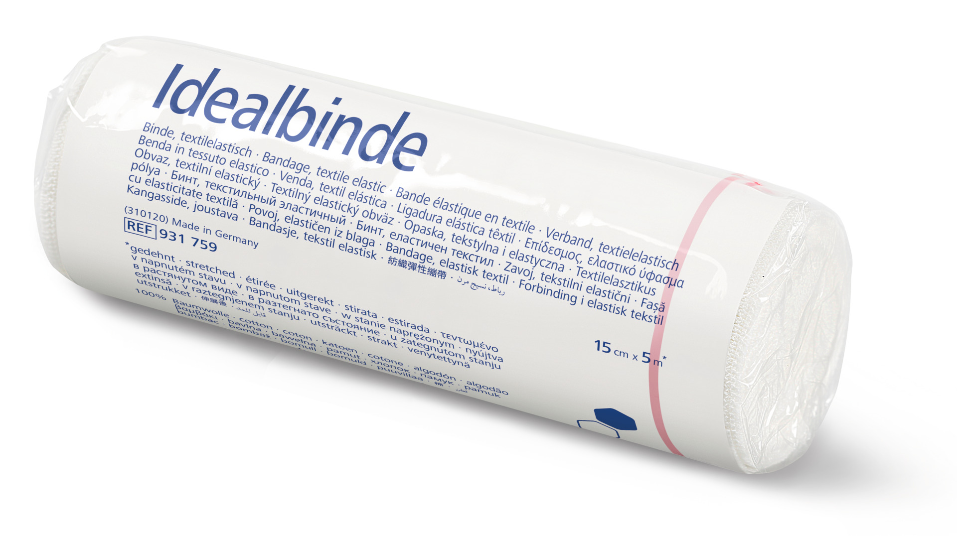 Ligadura em crepe de algodão, curta tração, conforme norma E DIN 61632-IB-S, arestas enroladas, com elasticidade aproximada de 90%, elevada compressão em atividade com pouca pressão em repouso, pode ser utilizada com o paciente em posição de repouso, lavável a 95ºC e esterilizável (autoclave a 134ºC ), a elasticidade perdida com a utilização pode ser recuperada com a lavagem da ligadura. 100 % algodão.