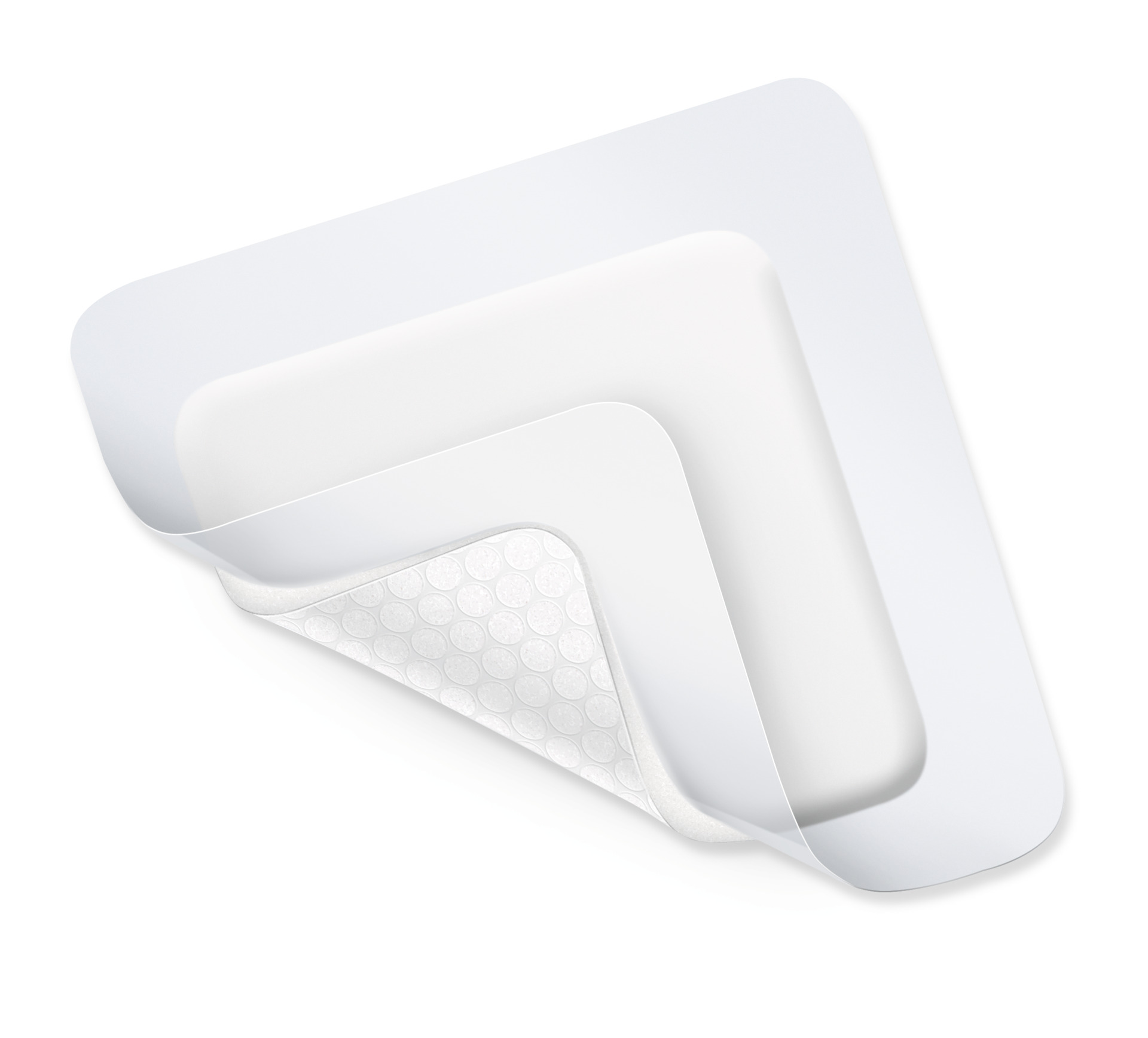 Penso de espuma hidrocelular com uma camada de interface em gel, a estrutura de espuma absorvente com células de poliuretano macias e finas permite a absorção do exsudato, libertando simultaneamente, através do gel hidratante, humidade para o leito da ferida, com uma gestão de fluidos mantida em equilíbrio, para uma cicatrização efetiva e remoção indolor, absorve bactérias e resíduos de células e mantém estas suas características, mesmo sob compressão, flexível e macio, com um bom efeito de almofada, não cria irritação, também disponível com rebordo de fixação de boa tolerância cutânea.